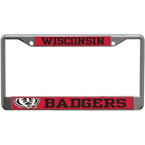 Wisconsin badgers chrome license plate frame with laser inserts.